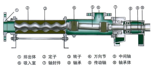 這種泵零件少,結構緊湊,體積小,維修簡單,轉子和定子是本泵的易損件,結構簡單,便於裝拆.